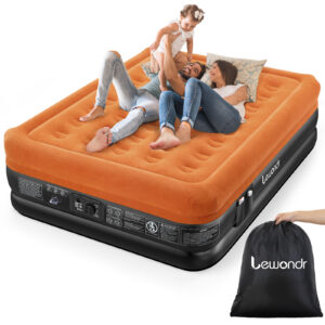 Lewondr Queen Air Mattress with Built in Pump, 18″ Deluxe Blow Up Mattress, Adjustable Self Inflating Air Mattress, 3Min Fast Inflatable Mattress for Camping, Home, Guests, Travel(661lb MAX), Orange